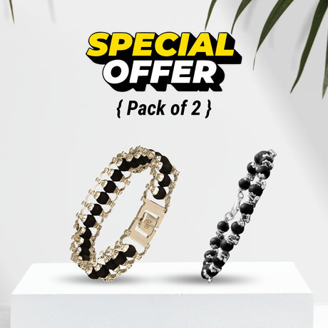 Silver Plated Karungali Mala + Karungali Bracelet Combo For Men