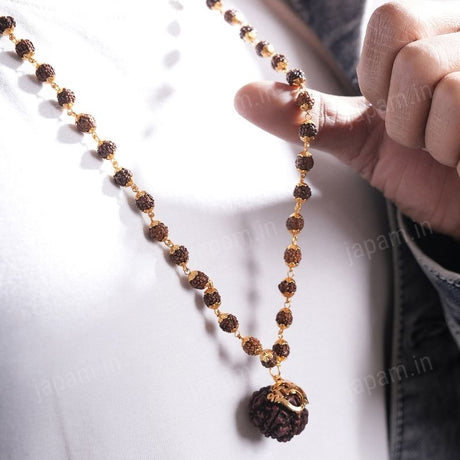 Gold Plated Rudraksha Links Necklace For Men