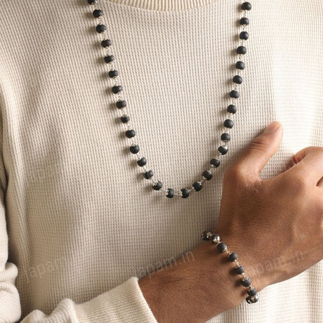 Silver Plated Karungali Mala + Karungali Bracelet Combo For Men