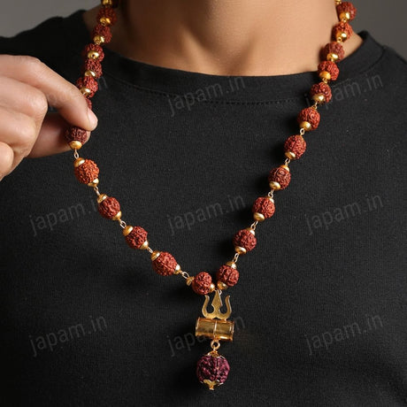 Gold Plated Rudraksha Trishool Necklace