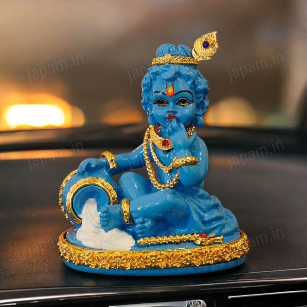 24K Gold Plated Makhan Chor Bal Gopal - for Car Dashboard and Mandir