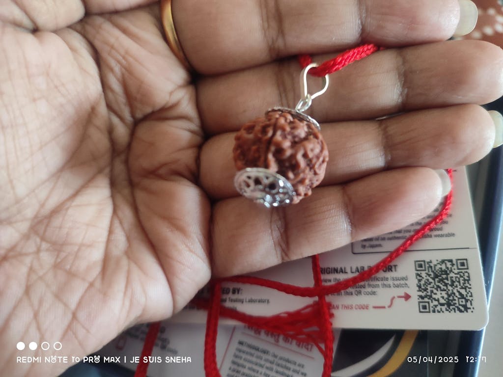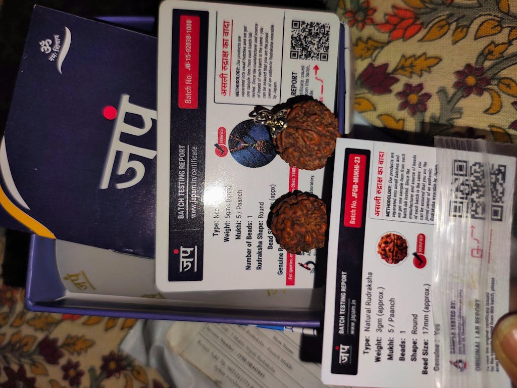 Genuine 5 Mukhi Nepali Rudraksha with certification of authenticity.