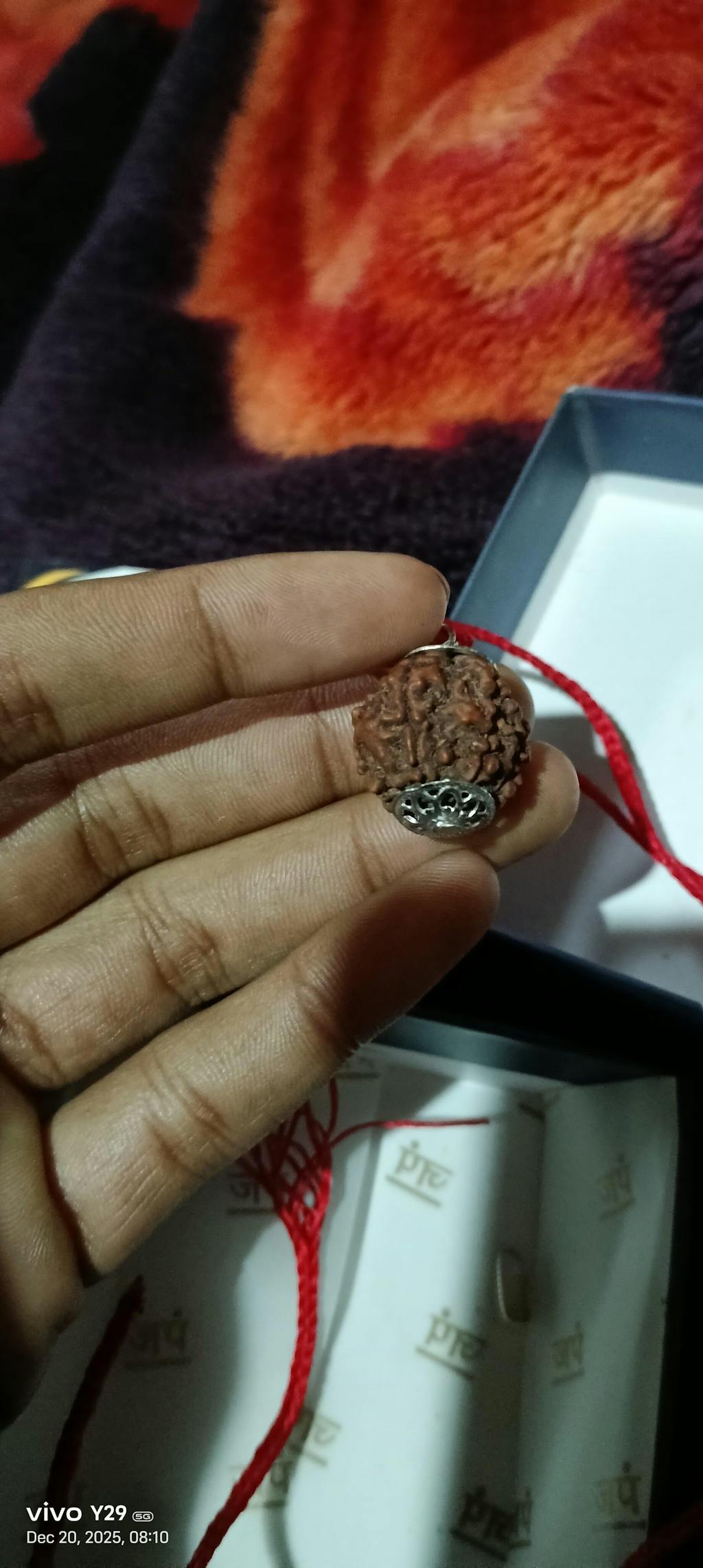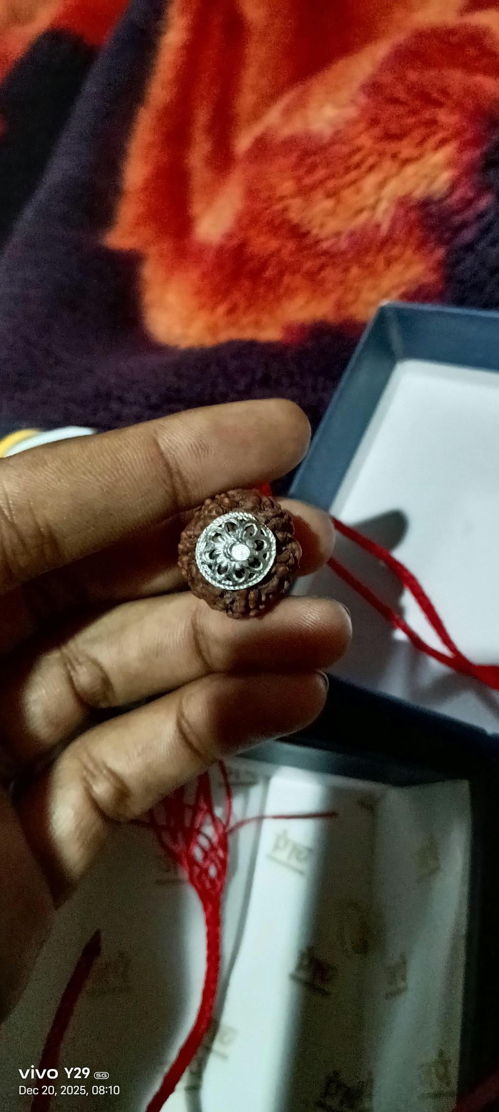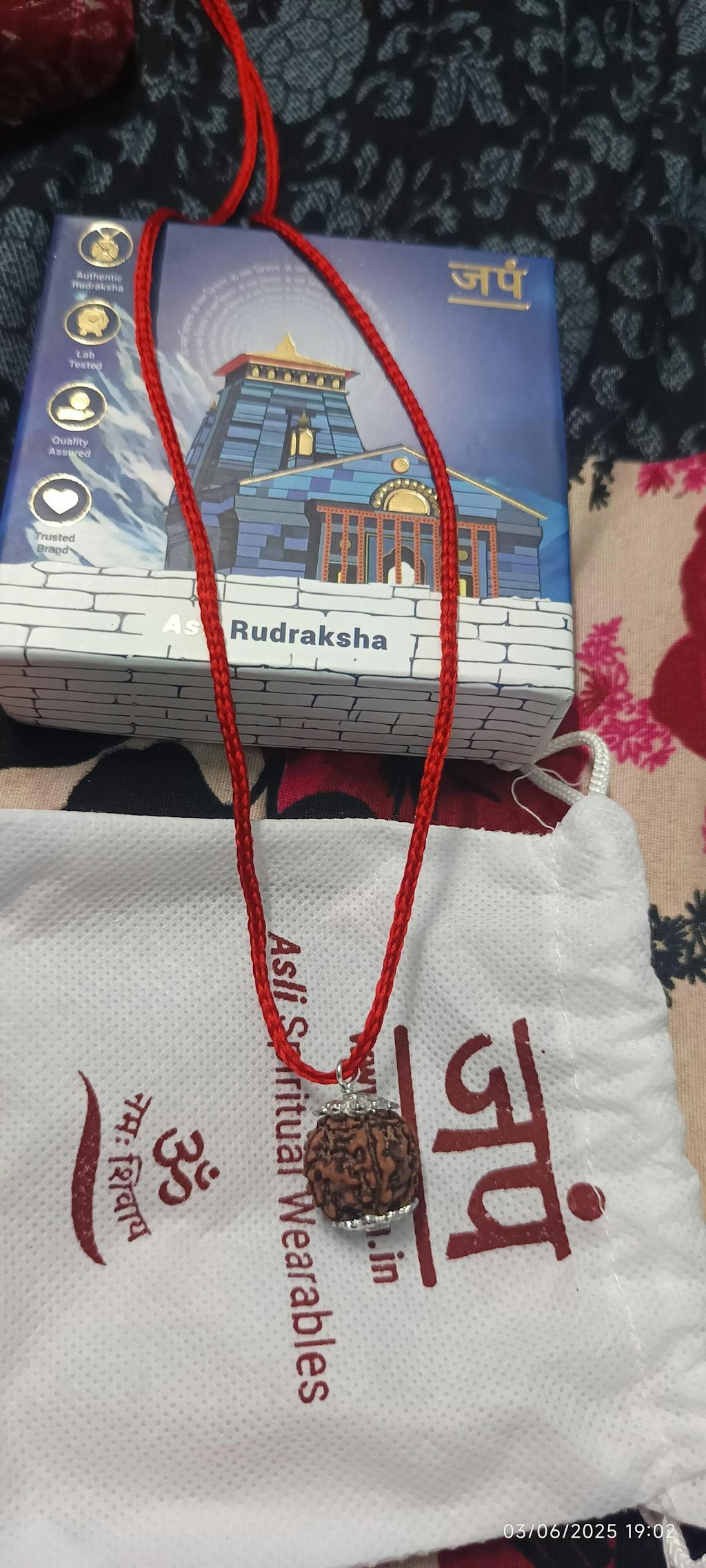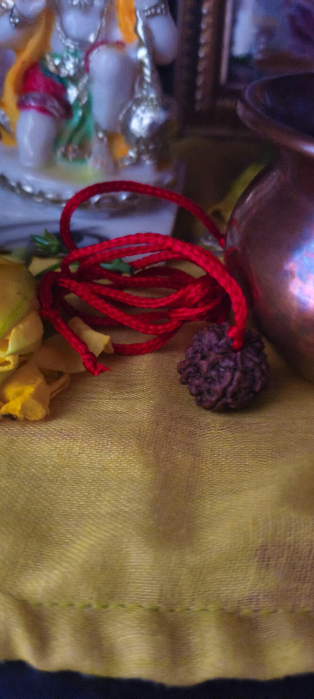 The single bead comes with silver capping and a red string (dhaaga) for wearing around the neck.