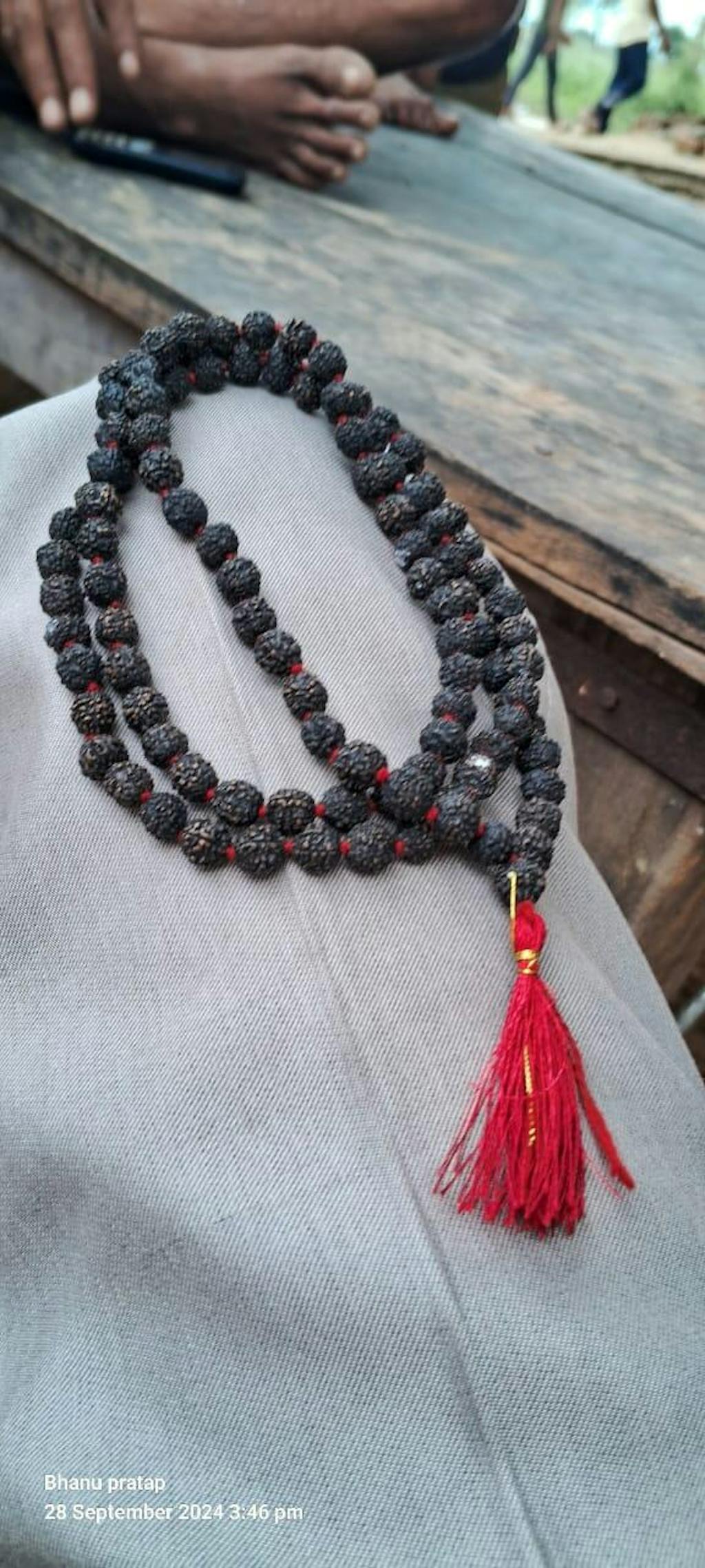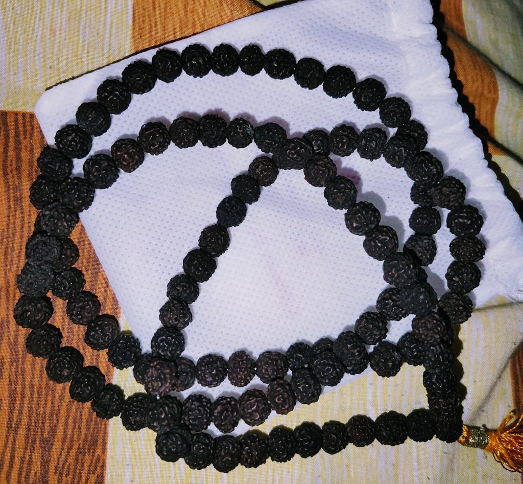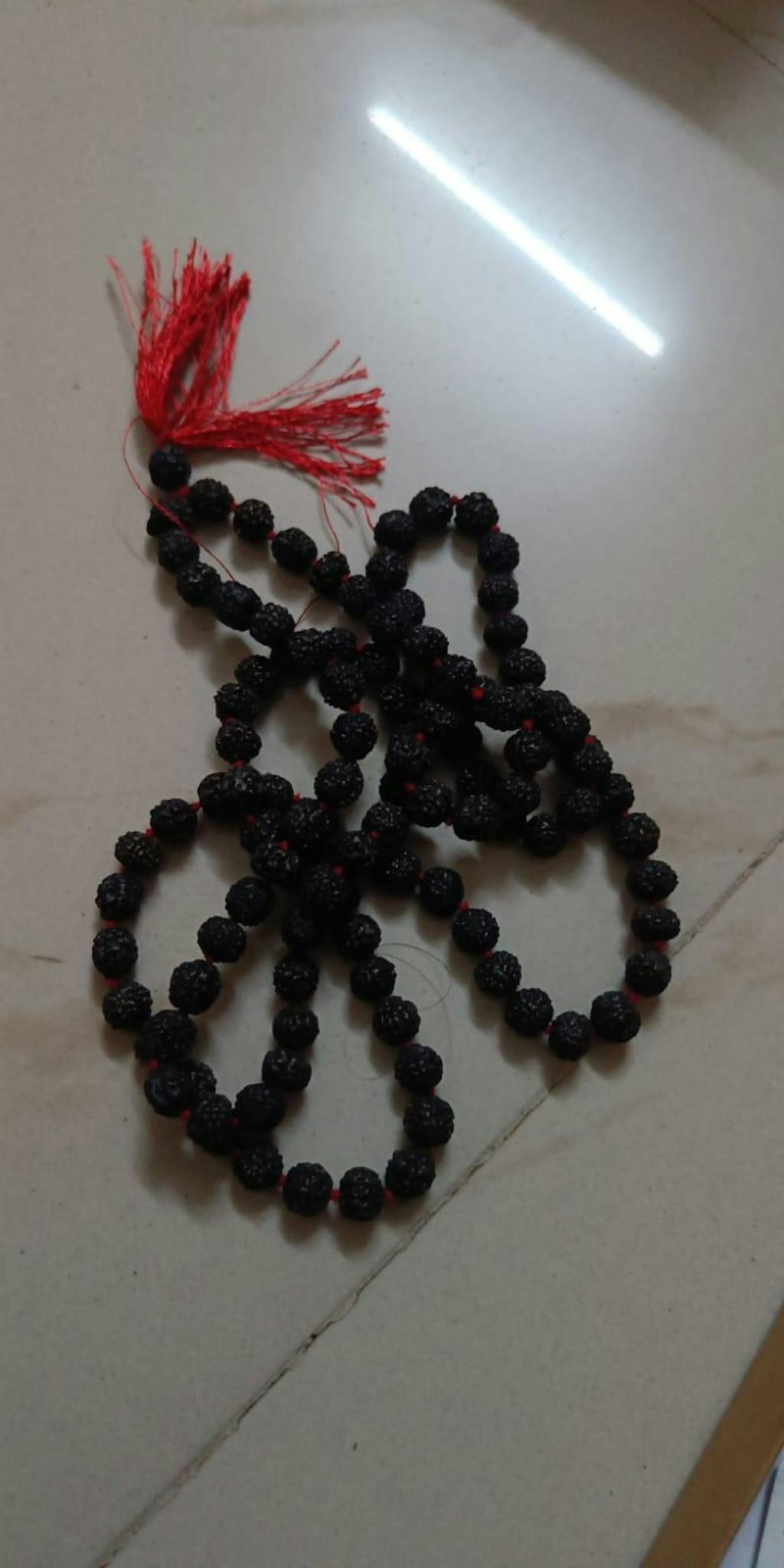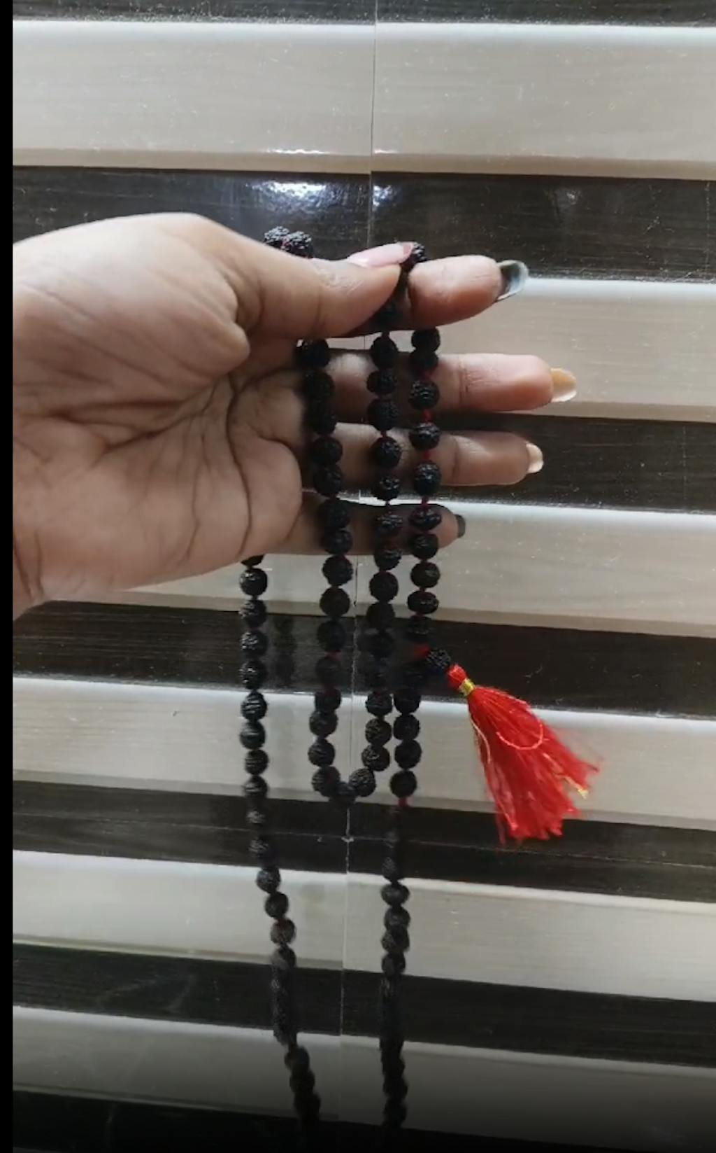 Genuine Paanch Mukhi Rudraksha Mala with black beads - can be worn by Men, Women and Kids.