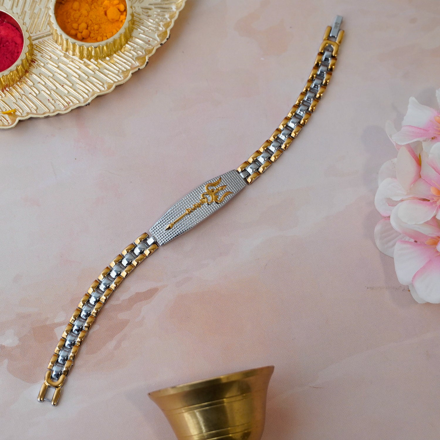 - Shiv Trishool Duotone Bracelet – Features Lord Shiva’s trishool motif in a stylish duotone design, serving as a symbol of protection and power.