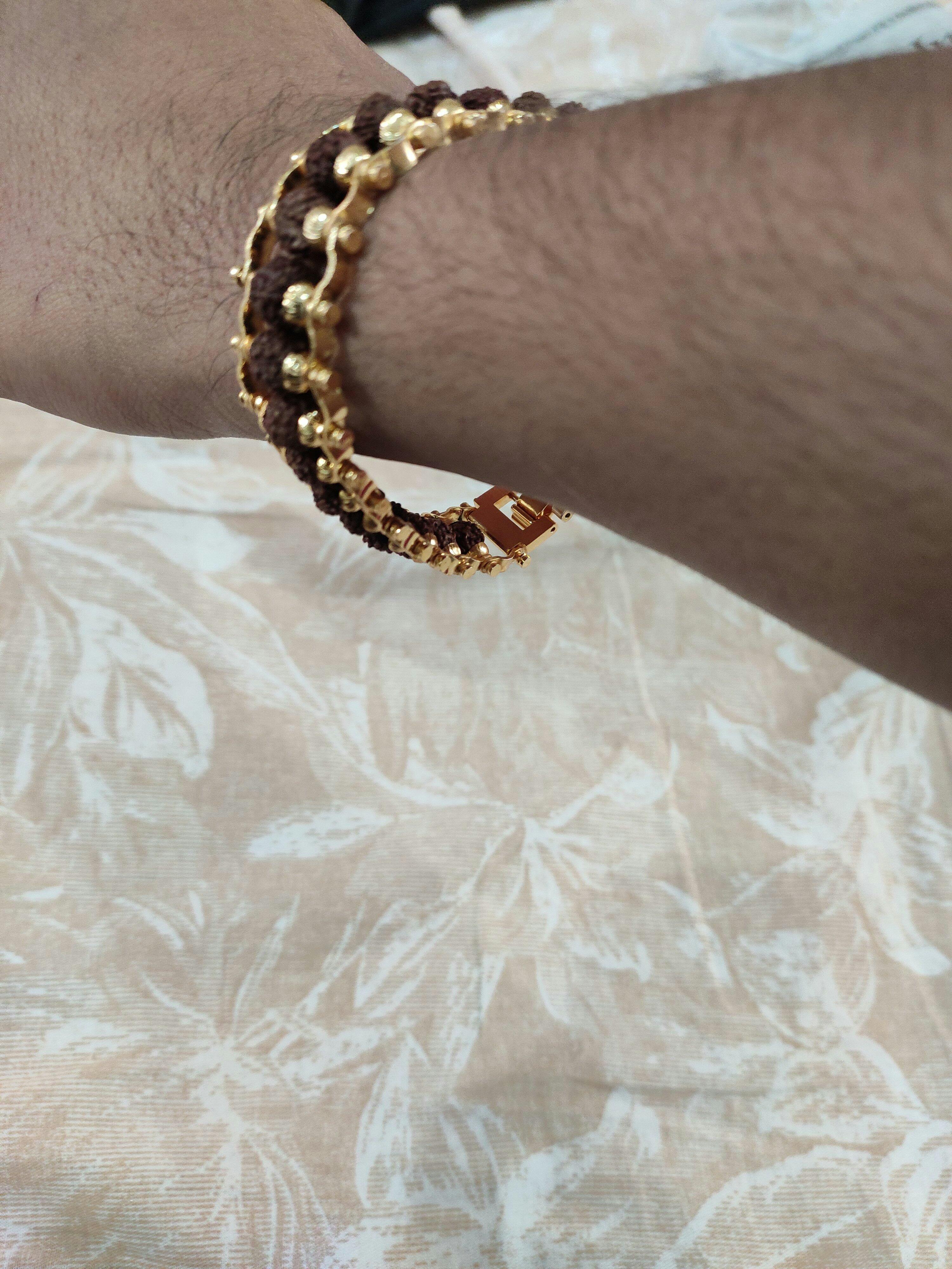 Genuine Paanch Mukhi Elemental Rudraksha Bracelet with Gold Plating - made for Women.