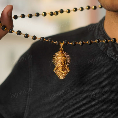 Embrace divine courage with Our Gold Plated Karungali Necklace with Hanuman Pendant.