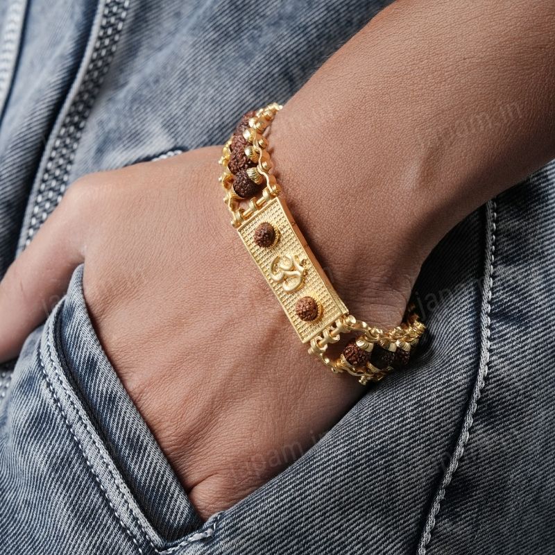 Genuine Paanch Mukhi Modern Om Rudraksha Bracelet with Premium Gold plating.