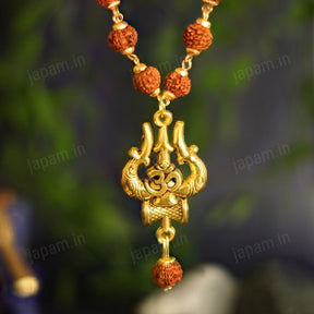 Gold Plated Rudraksha Om Trishool Necklace