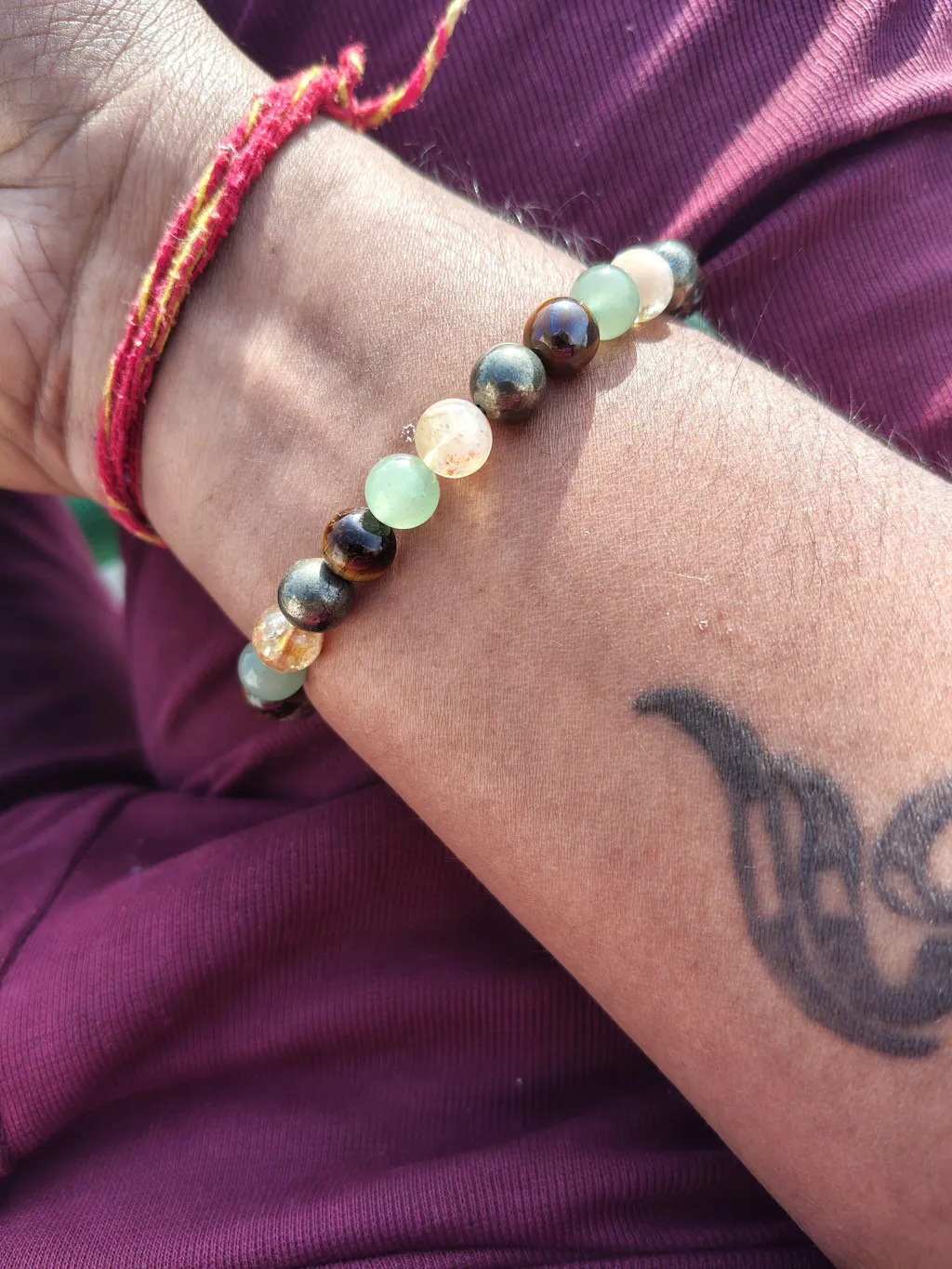 Attract Wealth and Good Luck with Our Money Magnet Fusion Bracelet with Zibu Stone - Pyrite, Tiger Eye, Citrine & Aventurine Beads.