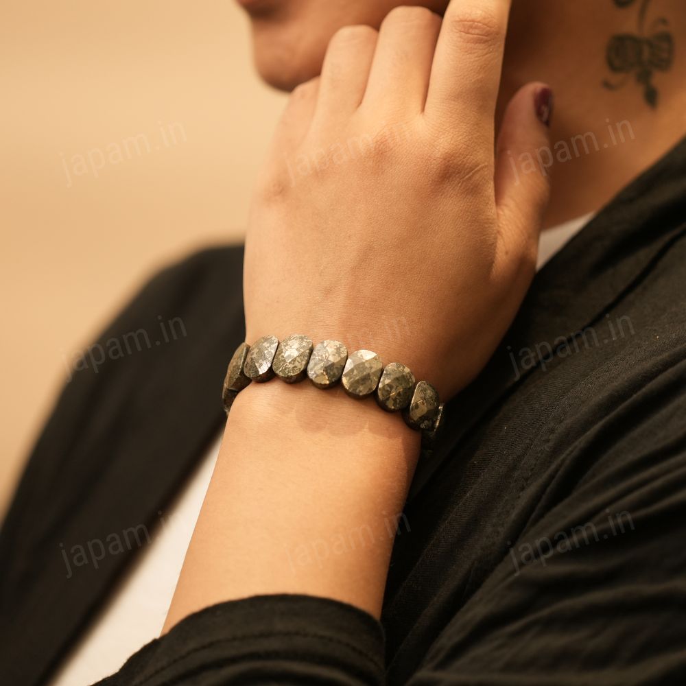 Crafted from premium quality Pyrite, this stunning band features the pyrite stones that showcase a captivating metallic luster. Known as the stone of wealth and manifestation, Pyrite is believed to attract wealth, boost confidence and protect against negative energy.