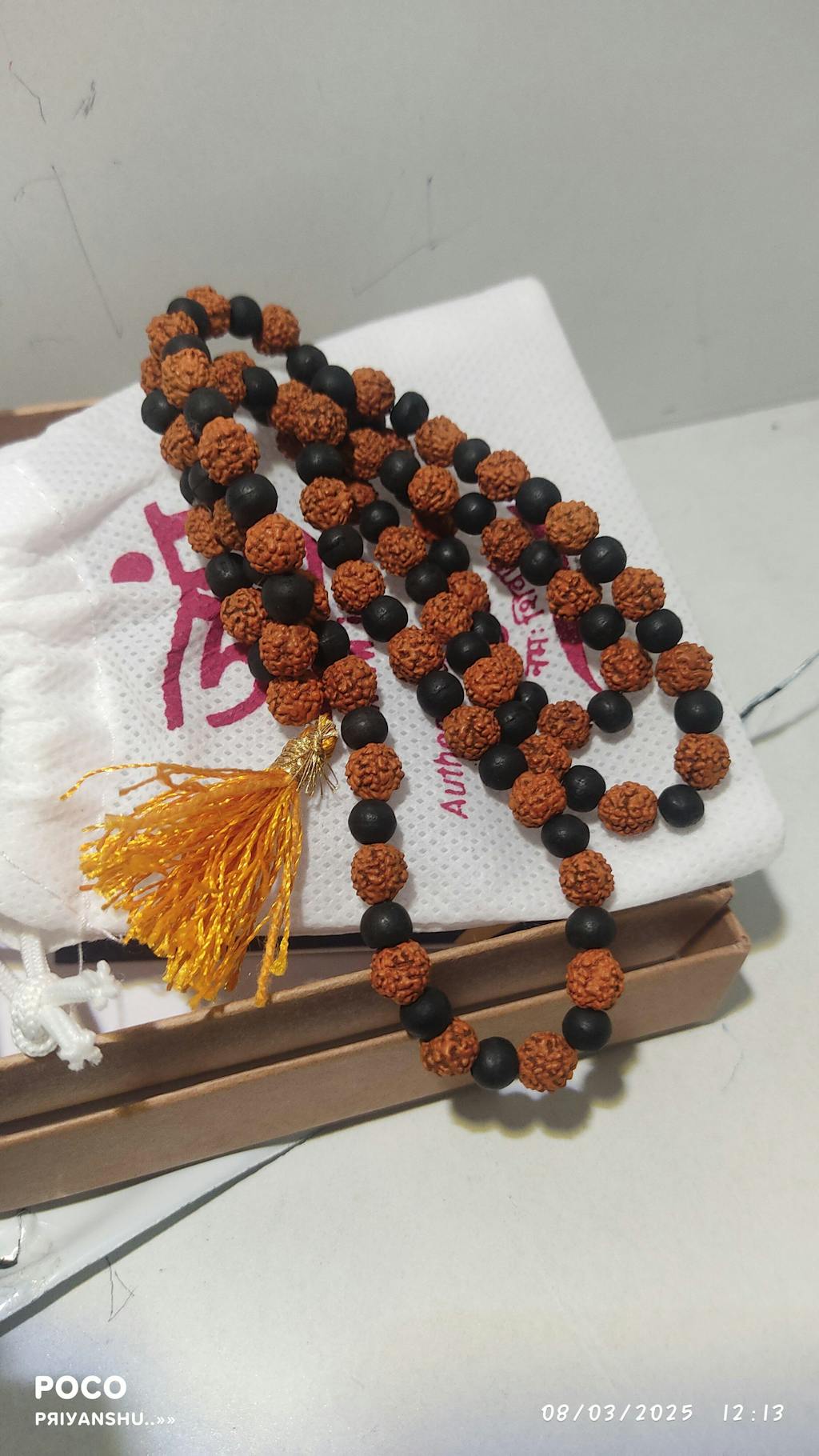 Handcrafted from authentic Rudraksha and Karungali beads, this mala blends spiritual energy with natural elegance. Known for its protective and grounding properties, Karungali enhances inner strength and balance, while Rudraksha fosters spiritual growth and clarity.