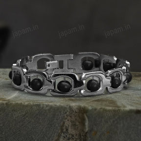 Silver Plated Luna Karungali Beads Bracelet - For Women
