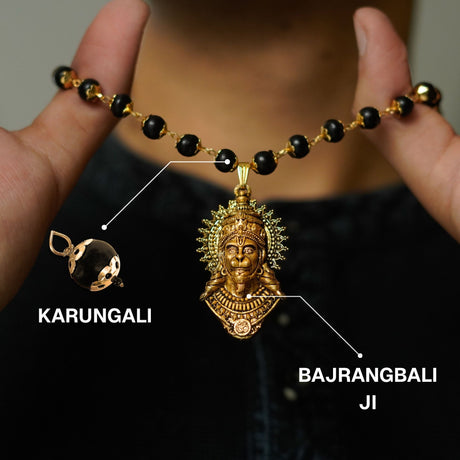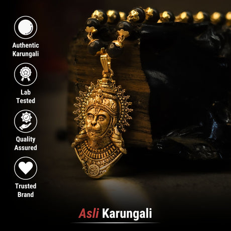 Gold Plated Karungali Necklace with Hanuman Pendant