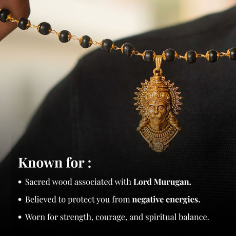 Embrace divine strength and spiritual grounding with our Karungali Necklace with Murugan Pendant.
