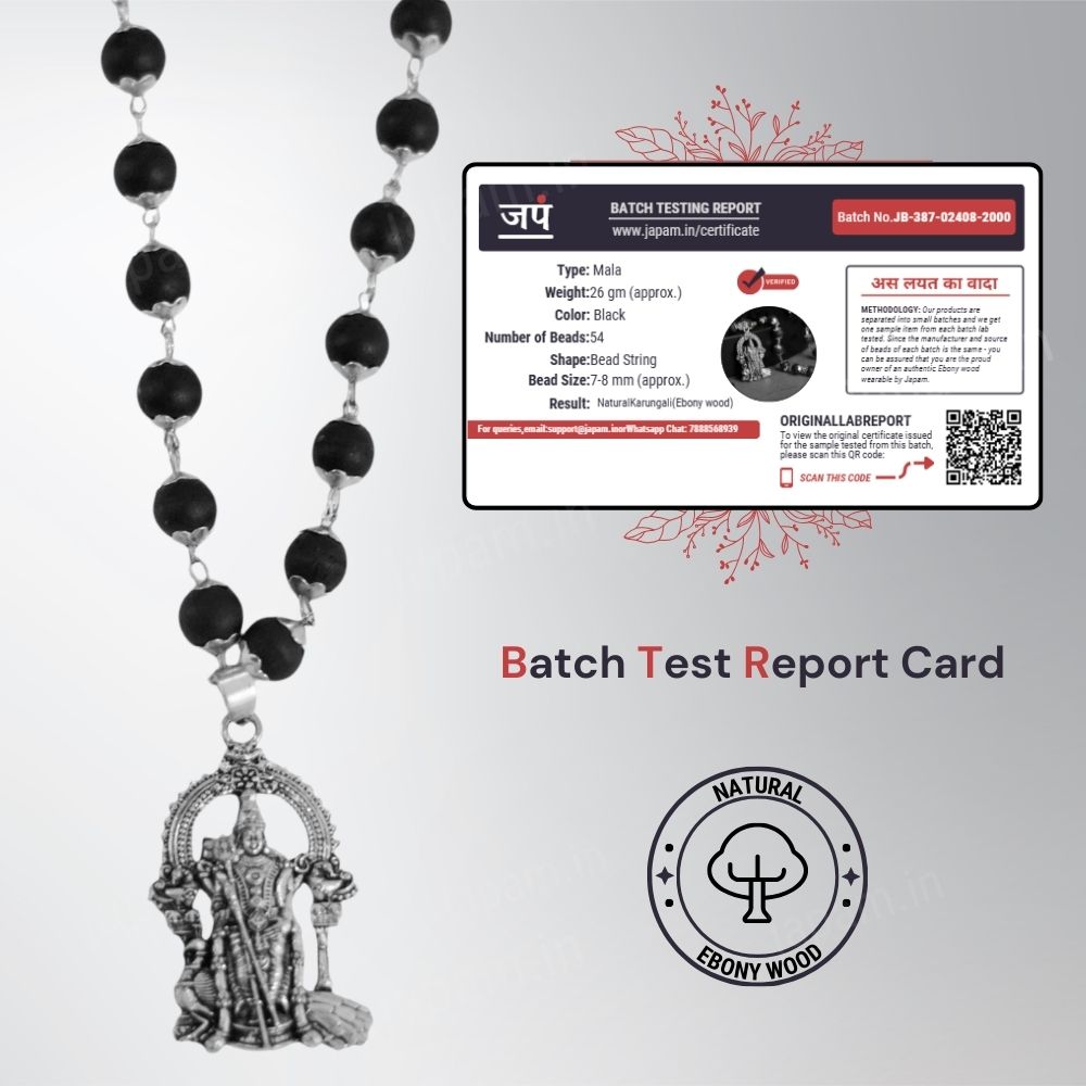 Handcrafted using authentic Karungali beads and adorned with a powerful Lord Murugan pendant, this necklace blends purity with purpose. Karungali wood is known for dispelling negative energies & promoting emotional balance, while Lord Murugan symbolizes courage & wisdom.