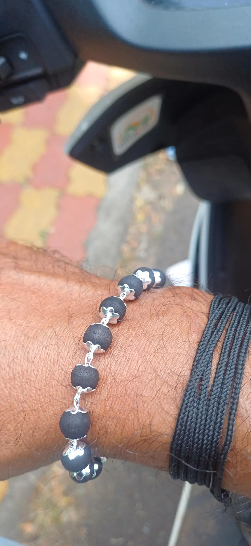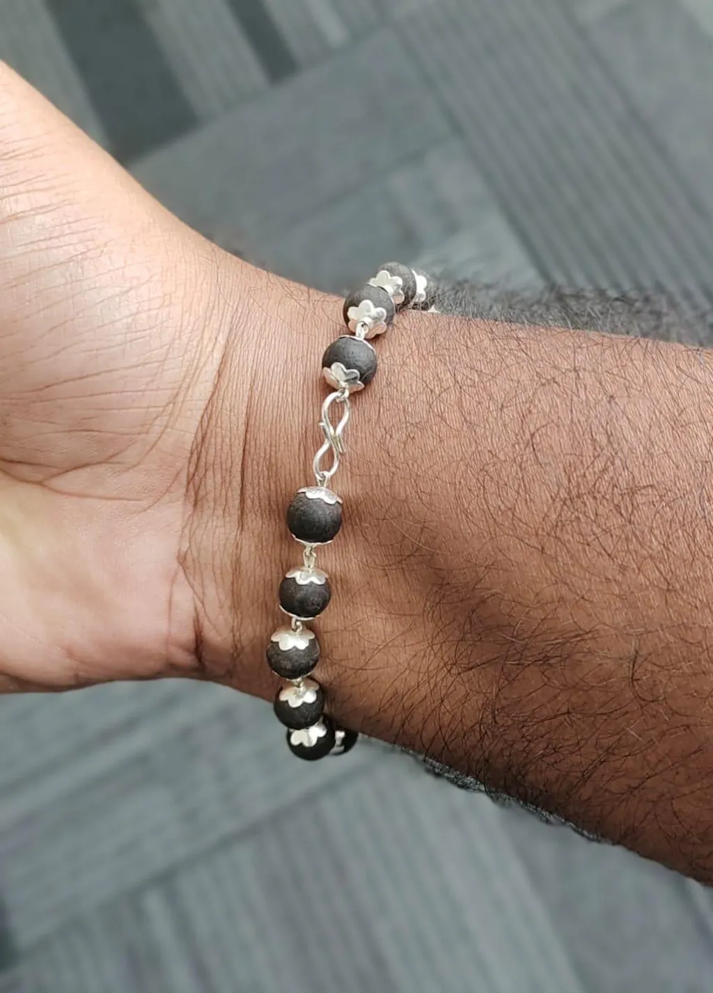 Embrace Radiant Elegance with Our Silver Plated Karungali Beads Bracelet