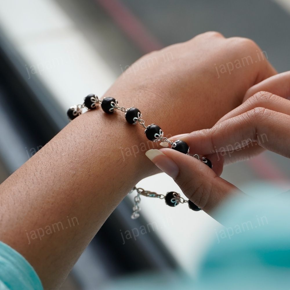 Silver Plated Luna Karungali Beads Bracelet - For Women