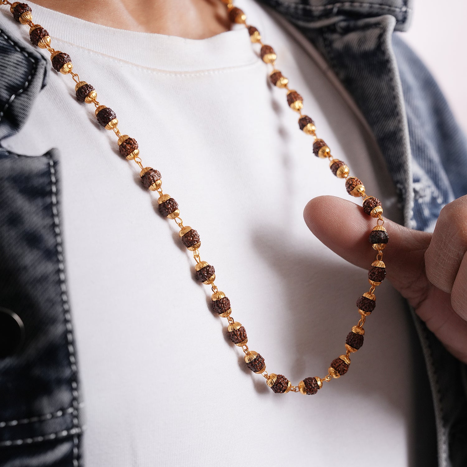 - Unified aesthetic with golden shine and sacred Rudraksha potency